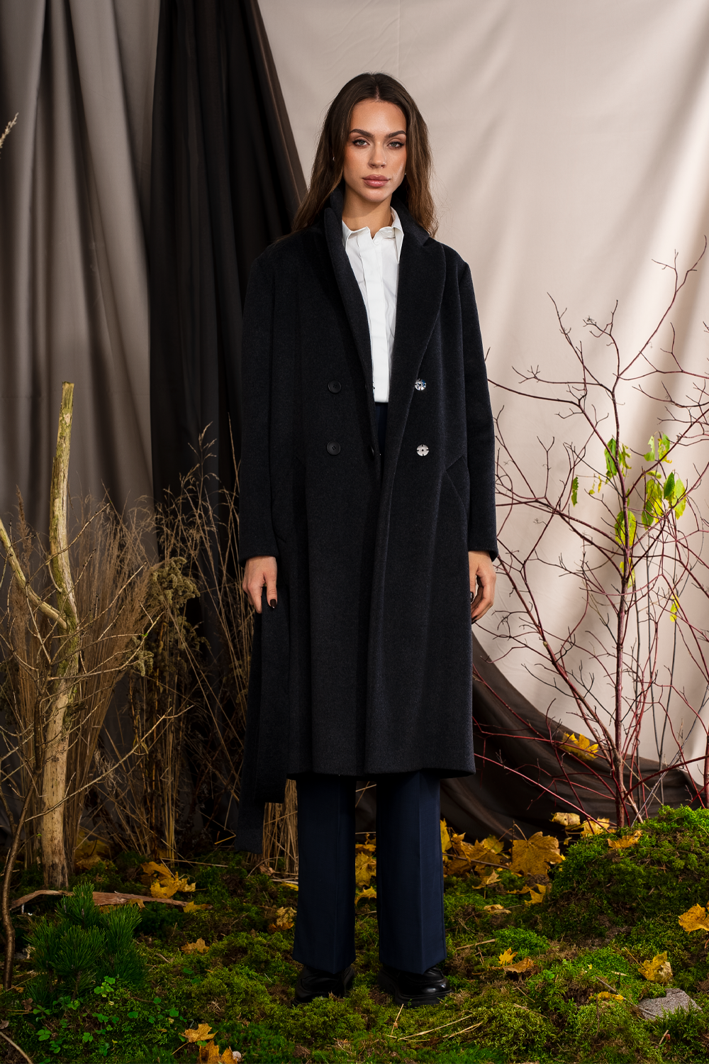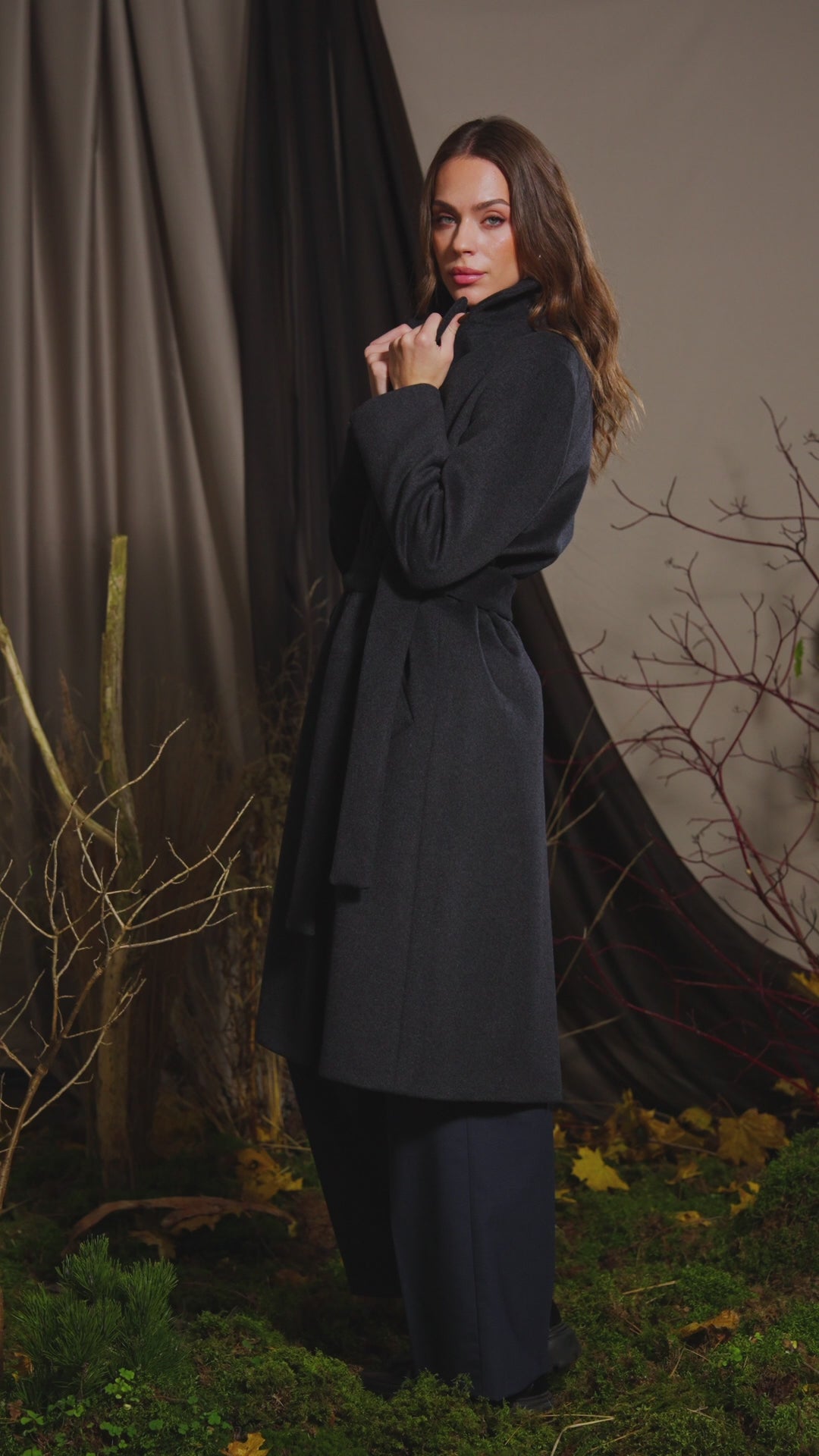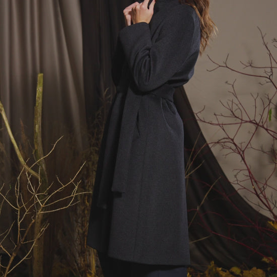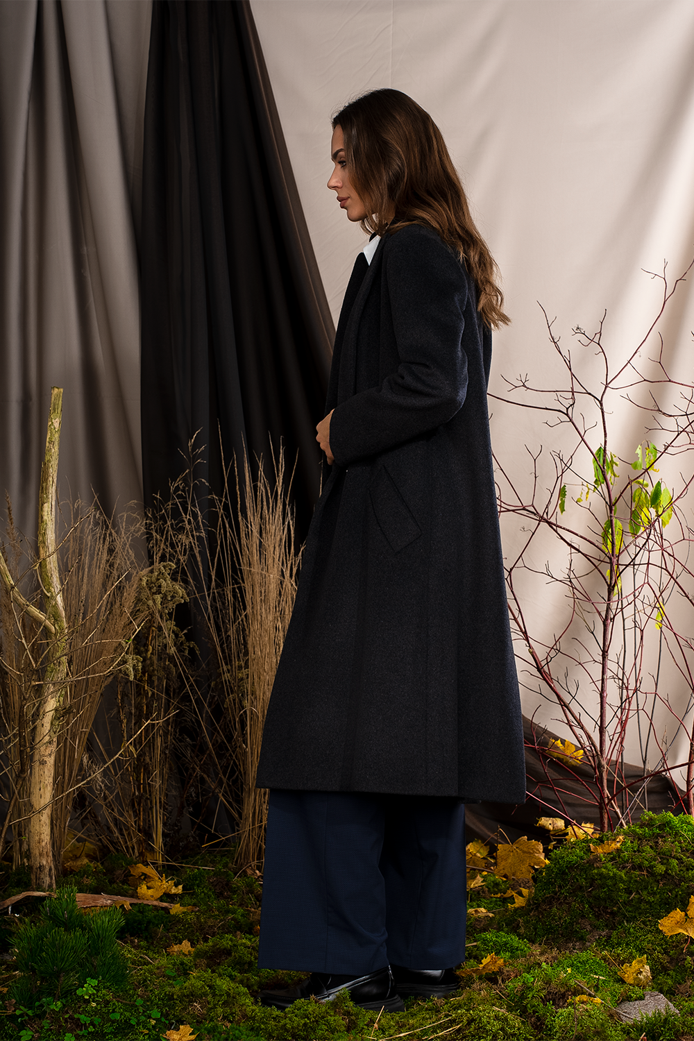 Sukūriau ir pagaminau klasikinį paltą moterims “Sovereign” – tai galios teikiantis drabužis, gimęs iš meilės ilgaamžiškumui ir prabangai. Paltas sukurtas iš natūralios vilnos audinio, kurio tamsiai pilka spalva subtiliai pereina į gilią, beveik juodos nakties, lyg per jaunatį, spalvą. Dėl audinyje esančios Kašmyro vilnos pluošto, audinys įgyja unikalų, vos žvilgantį plaukelį, kuris kalba apie aukščiausią kokybę. Šis paltas – tai investicija į ateitį ir tvarus pasirinkimas, džiuginsiantis Jus ne vieną šaltą sezoną.