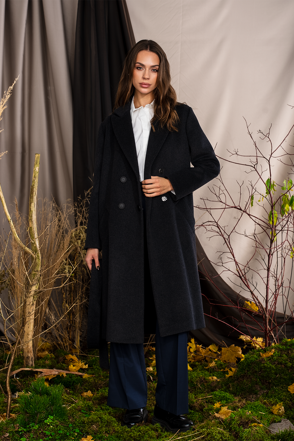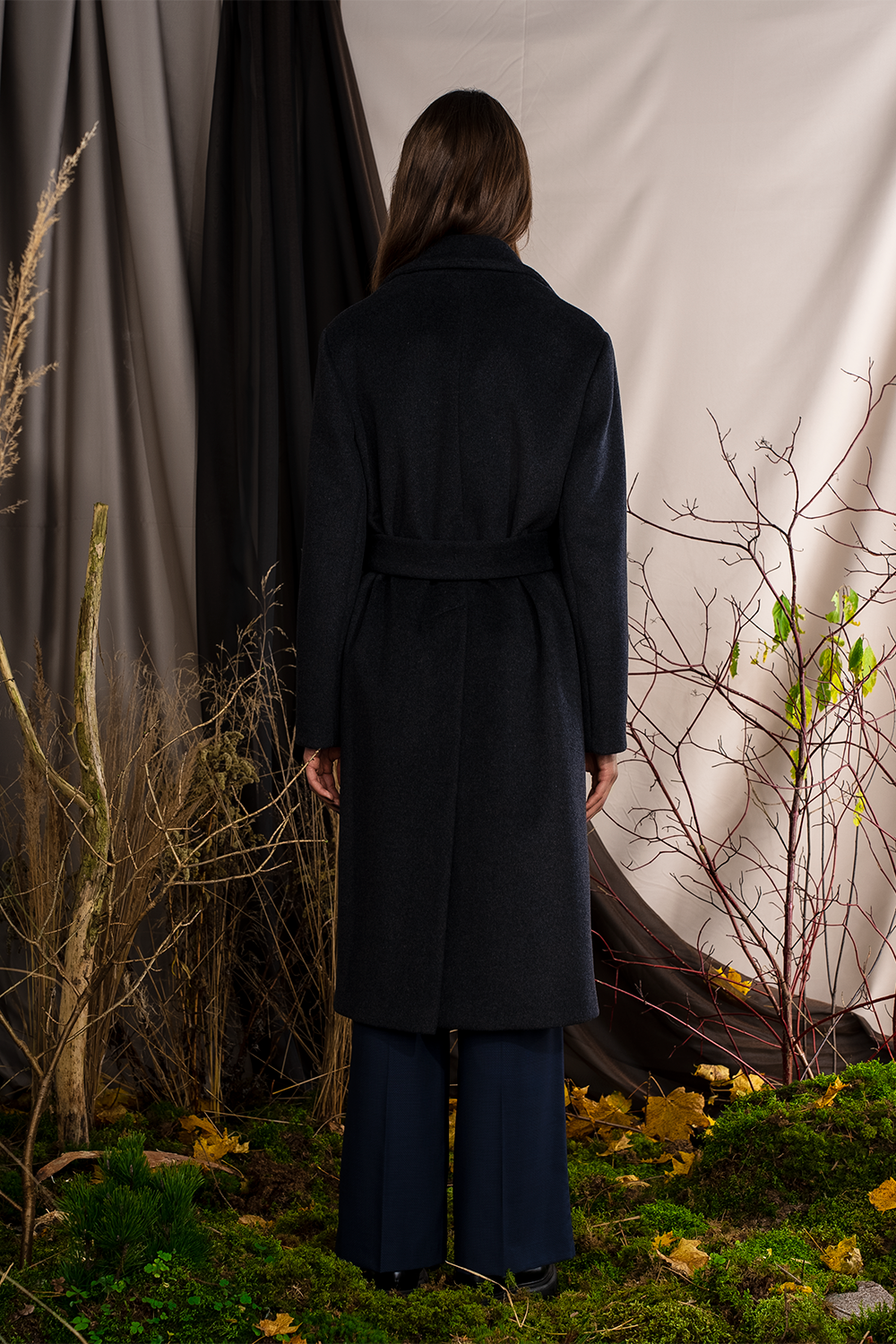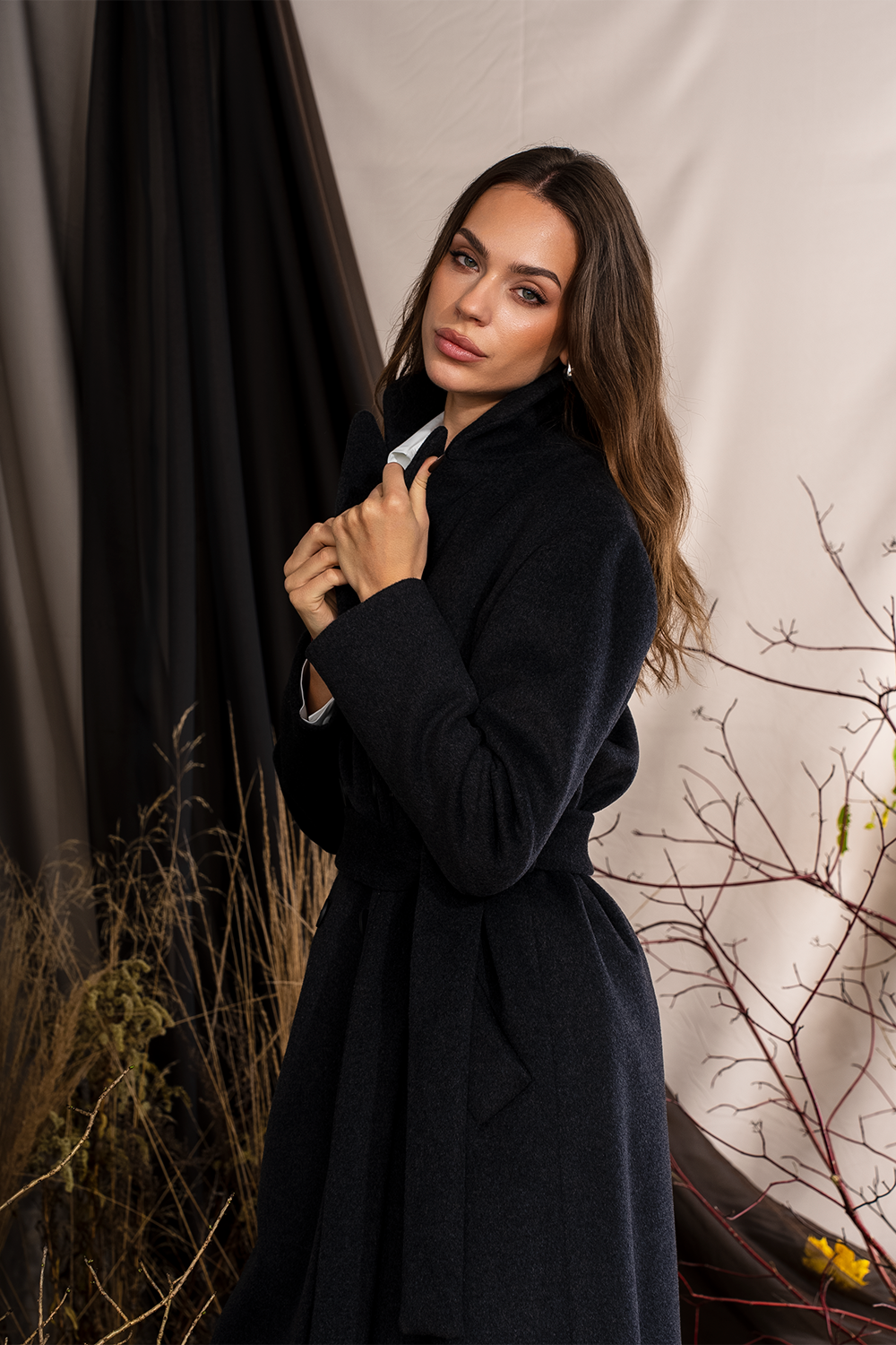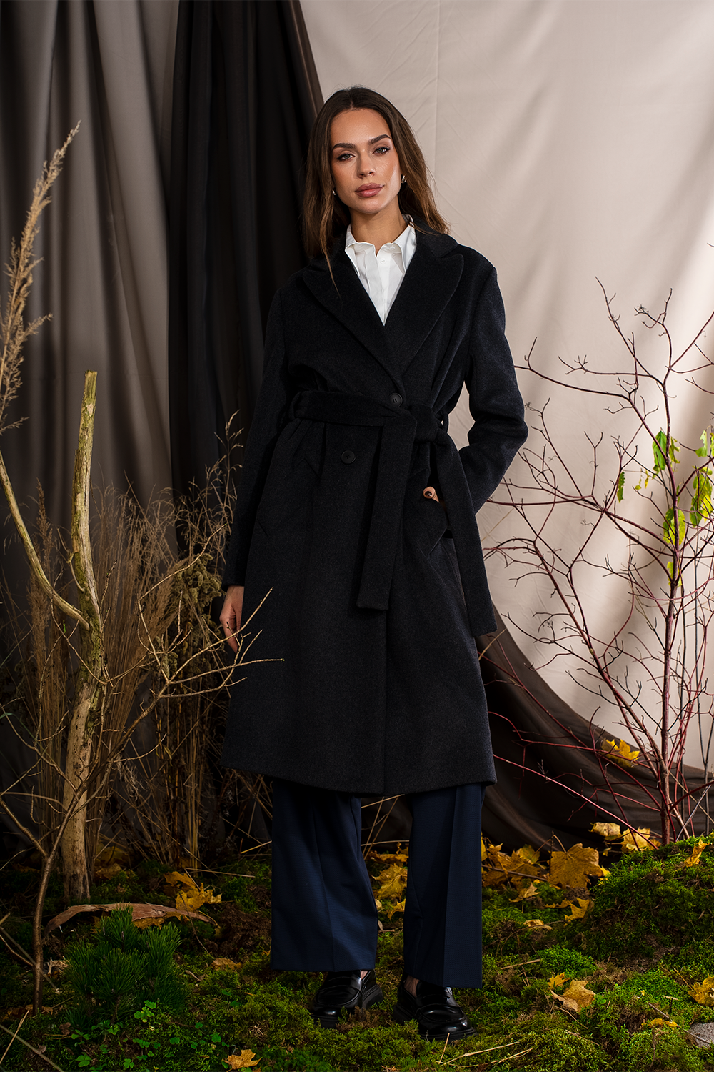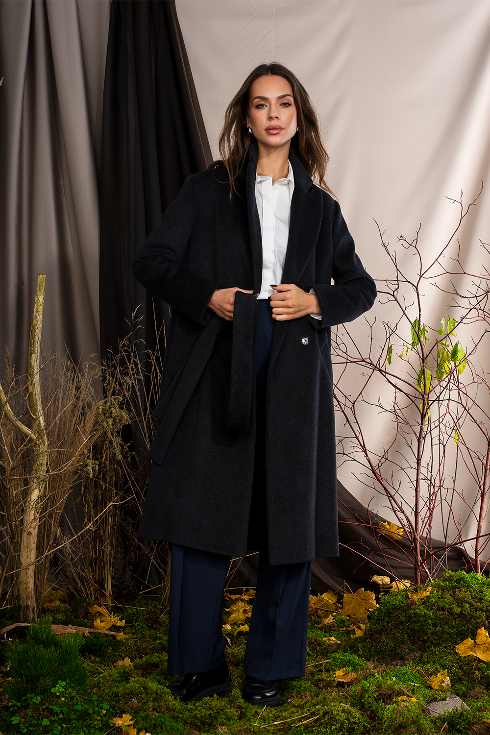 Palto "Sovereign" konstrukciją apgalvojau iki smulkmenų. Vidutinio dydžio klasikinė apykaklė ir dvigubas užmetimas per priekį sukuria solidumo ir elegancijos įvaizdį. Nors paltas susegamas spaudėmis, ant viršaus užsiūtos stilingos sagos, kurios tampa rafinuotu akcentu. Statytos, šiek tiek paplatintos rankovės per pečius suteikia siluetui jėgos ir modernumo, o šonuose įleistos kišenės su rėmeliu pabrėžia klasikinę eleganciją. Nugaroje įvesta ilga siūlė baigiasi giliu skeltuku, kuris garantuoja visišką judesių laisvę. Ties juosmeniu juosiamas diržas leidžia Jums pačiai rinktis, kaip formuoti savo siluetą – nuo laisvai krentančio iki griežtai įliemenuoto. Vidinė dalis išpildyta švelniu, juodos spalvos natūraliu viskozės pamušalu, kuris suteikia komforto pojūtį.