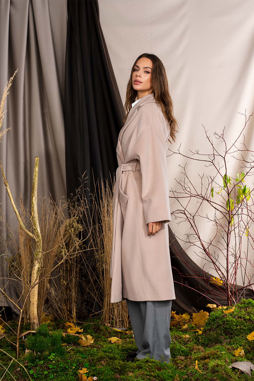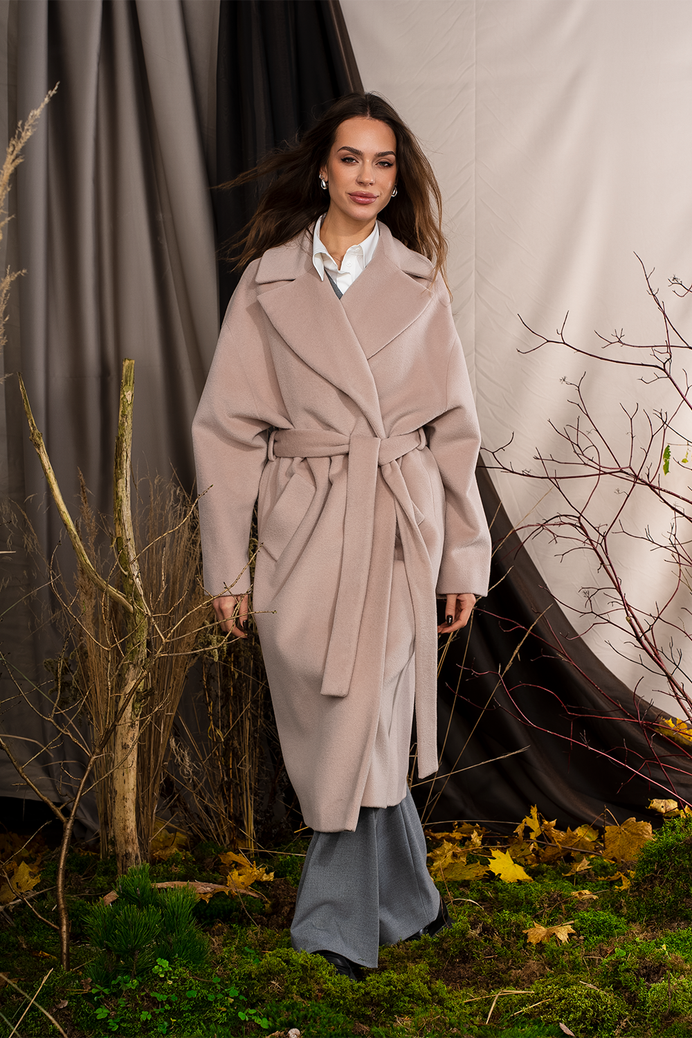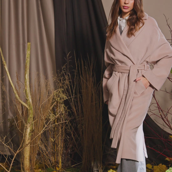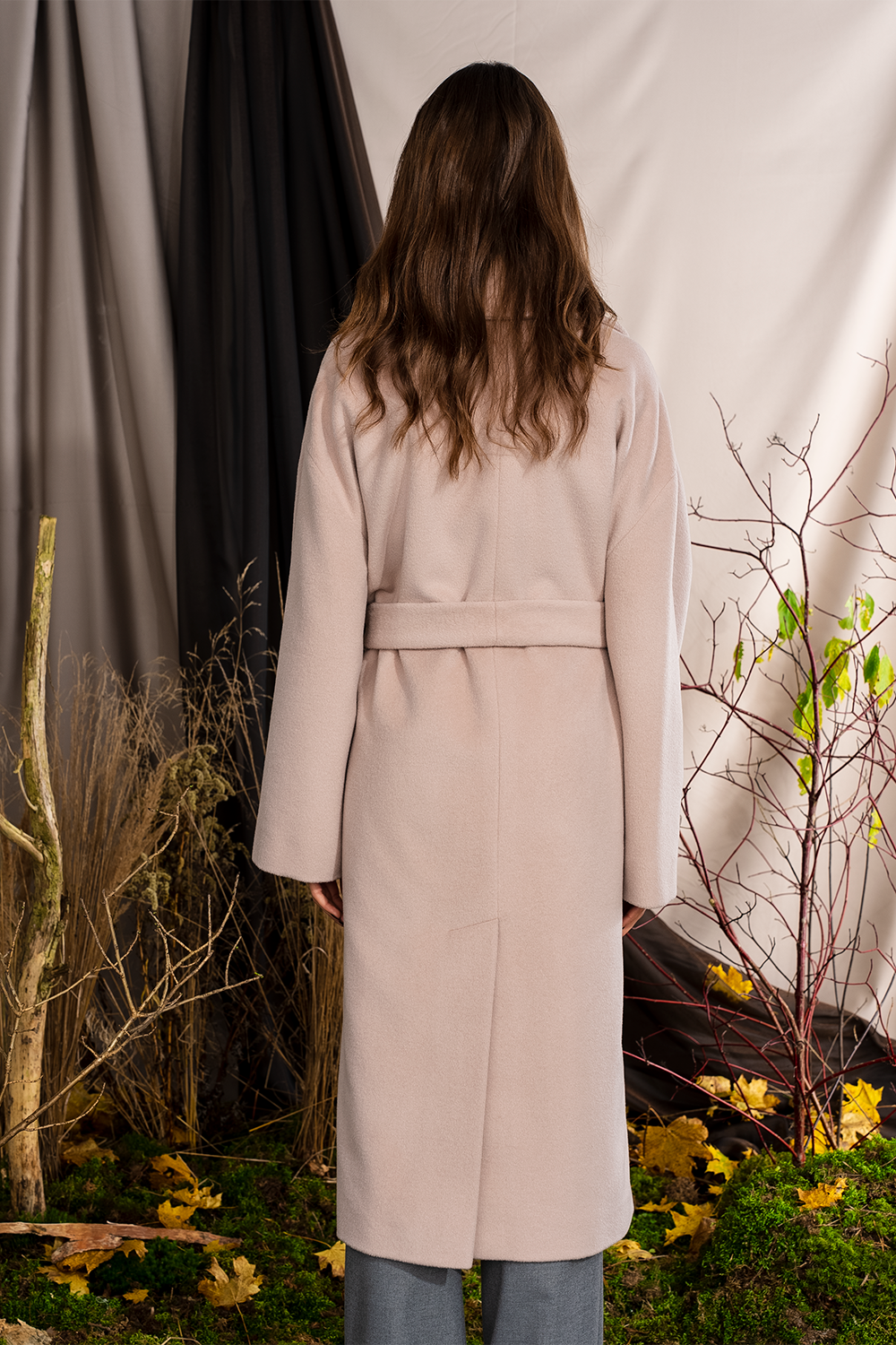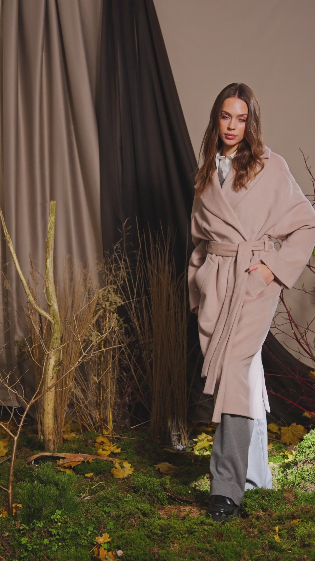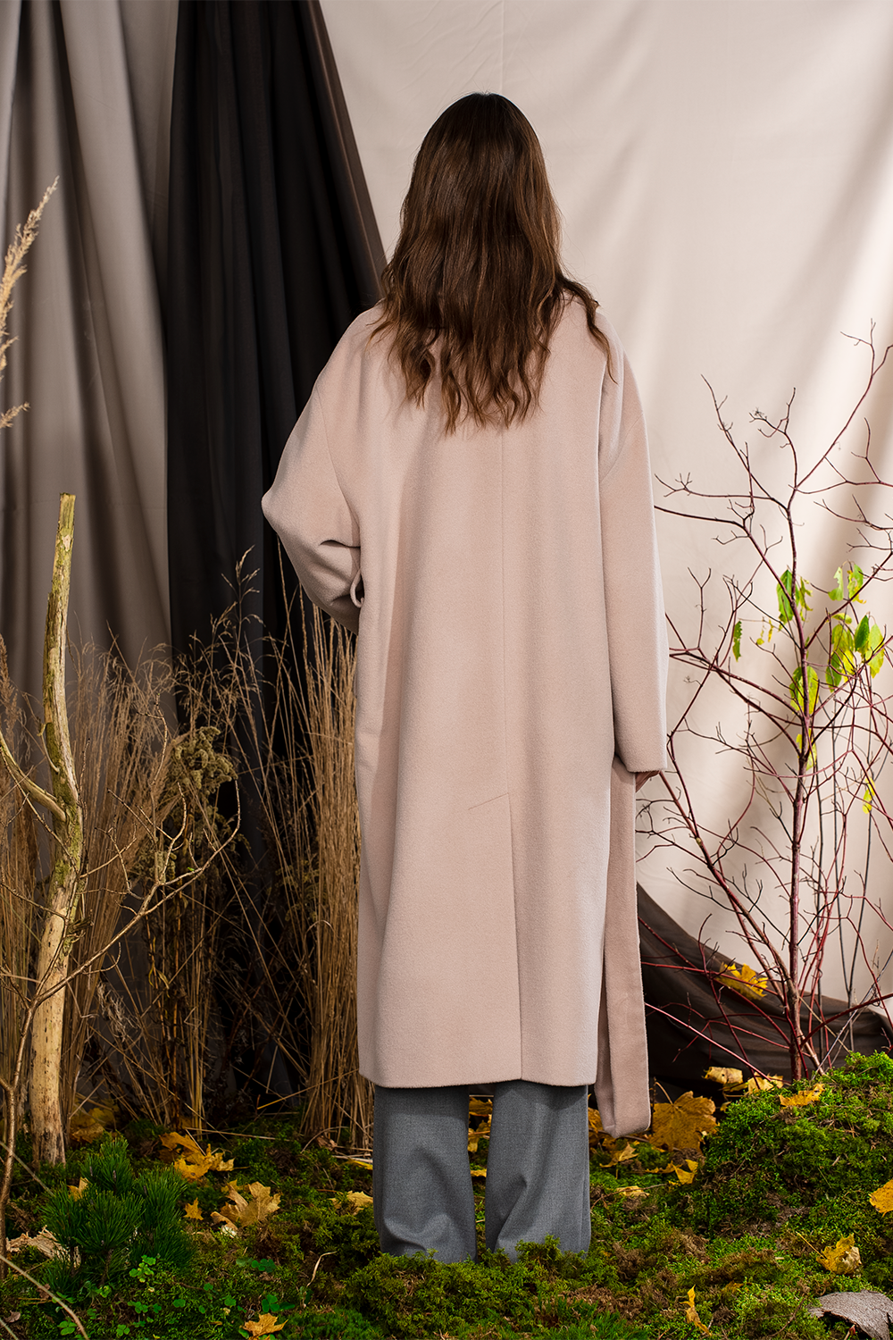 Paltas "Kvarco Rožė" tai tyli prabanga, sukurta Moteriai, kuri kasdien siekia elegancijos ir jaukumo harmonijos. Jis gimė iš meilės prabangiai vilnai ir reto, švelnaus pelenų rožės atspalvio. Audinys, turintis nežymų plaukelį ir esantis šiek tiek minkštesnis nei įprastai, krenta lengvai ir laisvai, todėl paltas puikiai atrodo vilkimas tiek su diržu, tiek be jo, įkūnydamas nepriekaištingą oversize stiliaus laisvę.