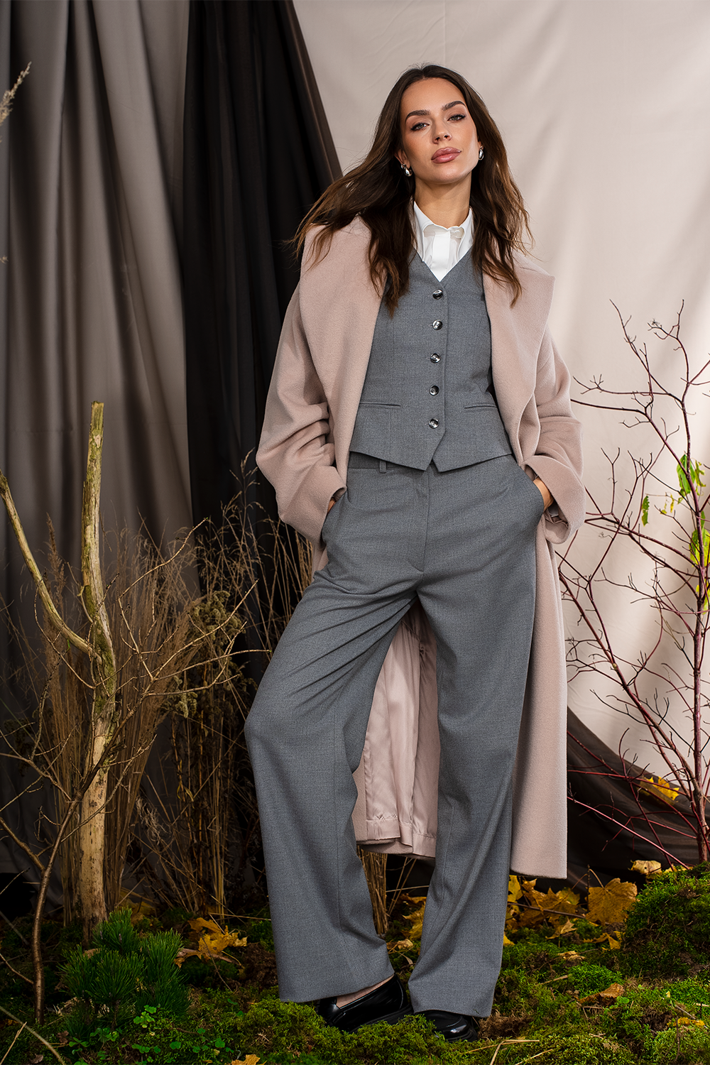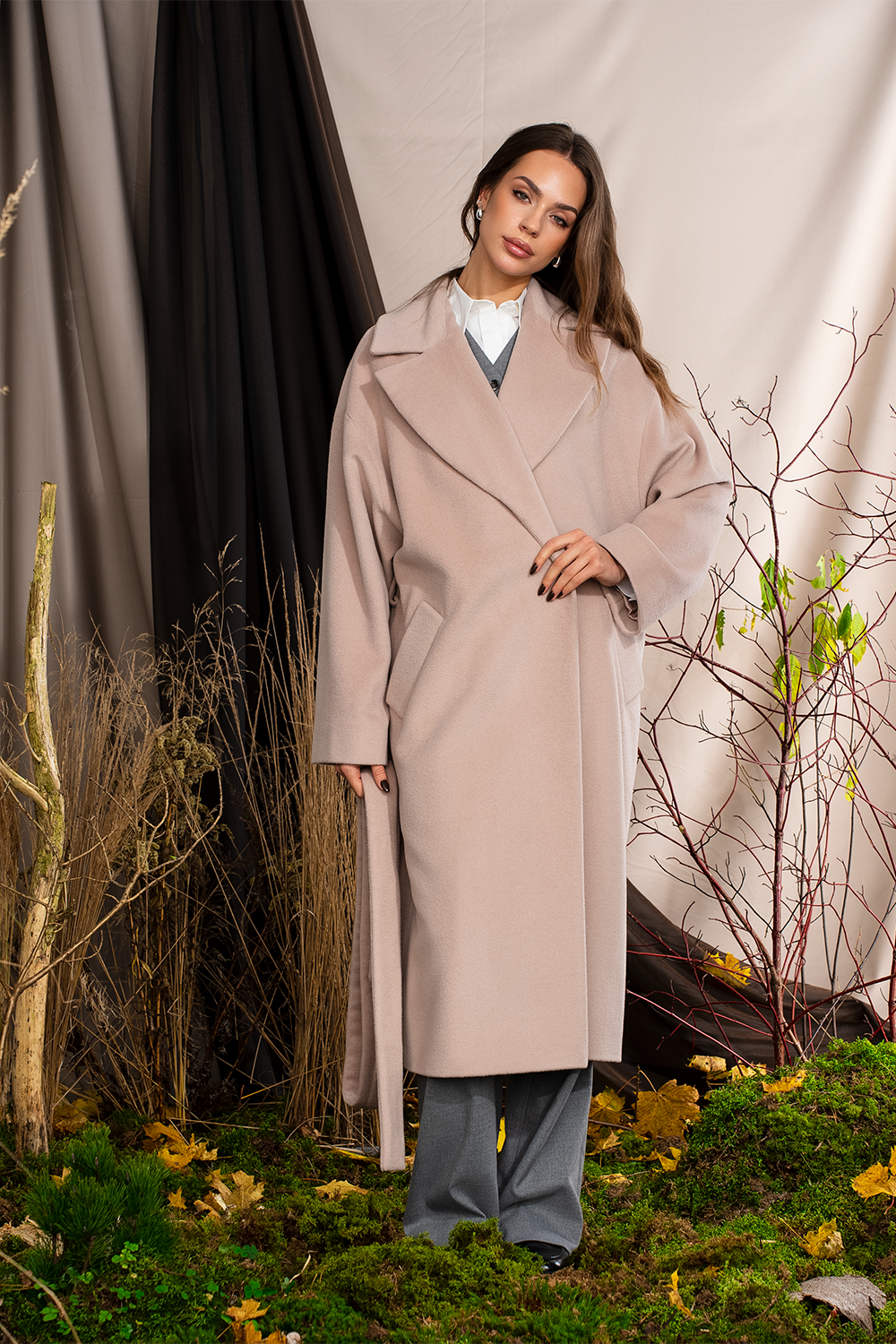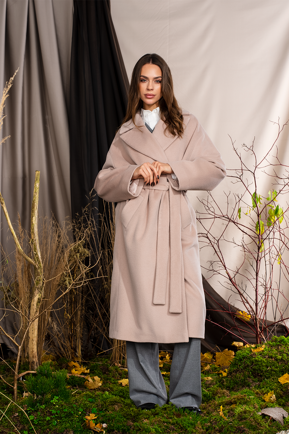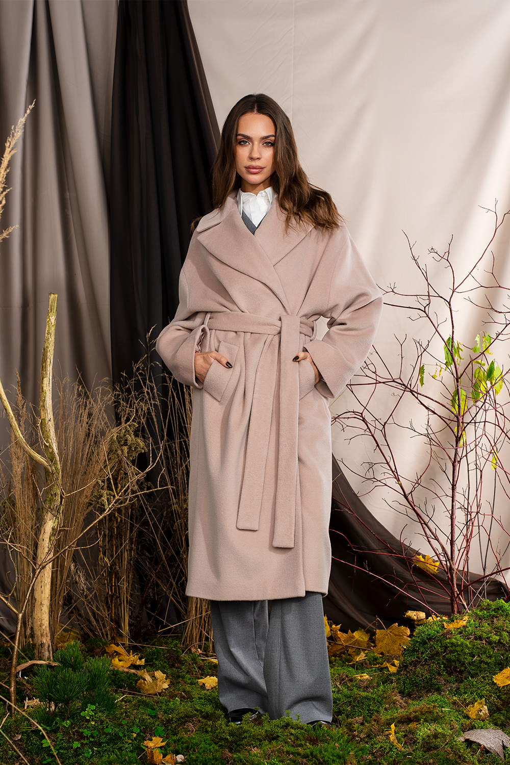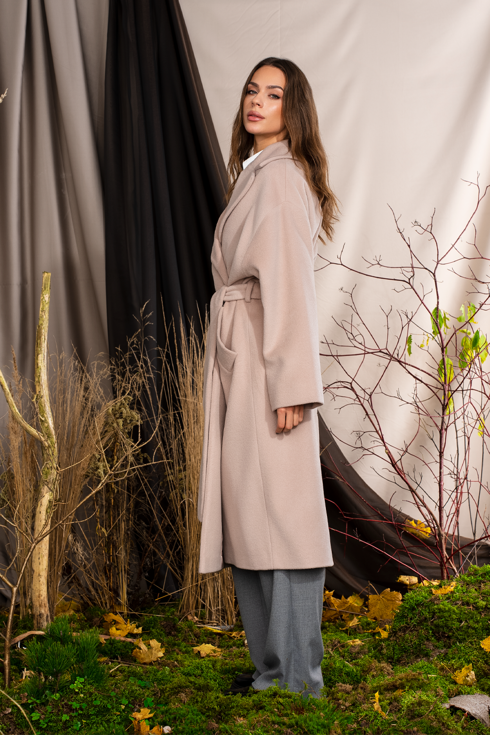 Paltas "Kvarco Rožė" tai tyli prabanga, sukurta Moteriai, kuri kasdien siekia elegancijos ir jaukumo harmonijos. Jis gimė iš meilės prabangiai vilnai ir reto, švelnaus pelenų rožės atspalvio. Audinys, turintis nežymų plaukelį ir esantis šiek tiek minkštesnis nei įprastai, krenta lengvai ir laisvai, todėl paltas puikiai atrodo vilkimas tiek su diržu, tiek be jo, įkūnydamas nepriekaištingą oversize stiliaus laisvę.