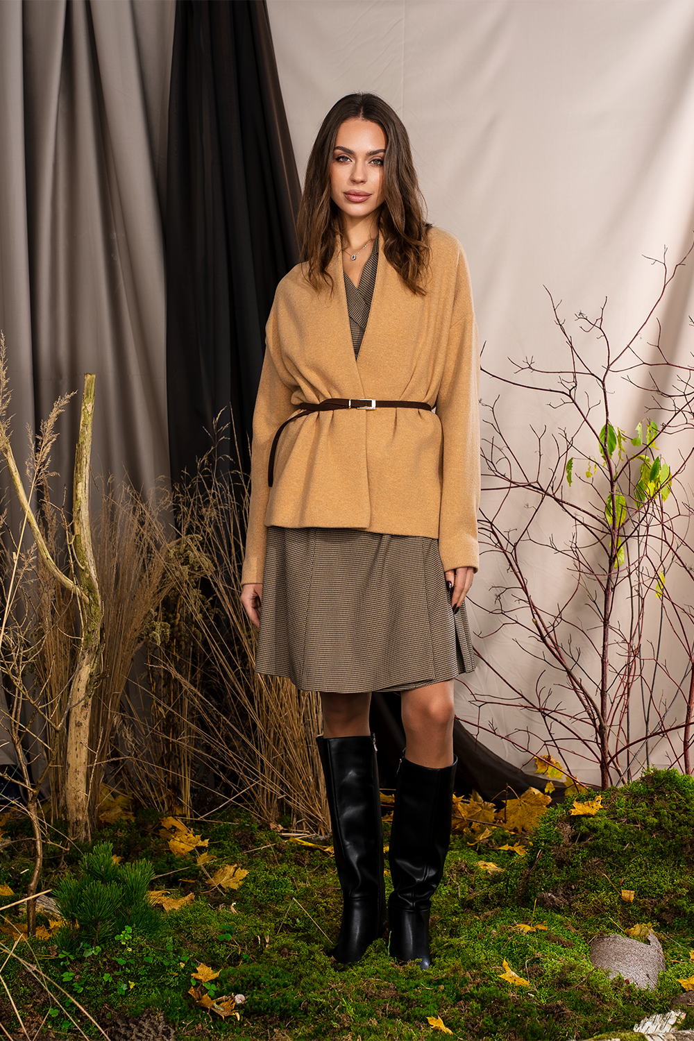 Tai suknelė, gimusi tam, kad Jus lydėtų nuo solidžių verslo susitikimų iki elegantiškų renginių. Žemiškų spalvų paletė lengvai derinama, o dėka nestoro audinio ji patogiai nugula po švarku ar paltu. "Vittoria" nuostabiai dera su ilgais auliniais batais.